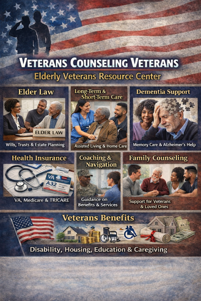 The mission of the Veterans Counseling Veterans Serving Our Elderly Veterans Program is to provide compassionate, veteran-led emotional support, mental health counseling, and connection services to aging and elderly veterans, ensuring they are not forgotten, isolated, or left to struggle alone. We honor their service by helping them maintain dignity, stability, and hope through culturally competent peer-based care and community support.